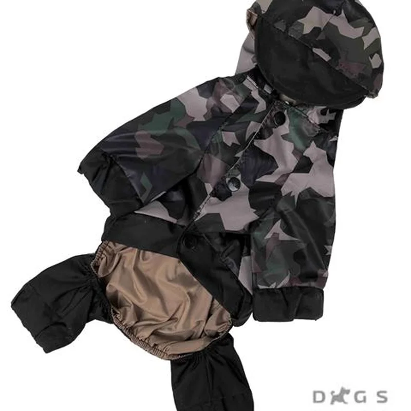 дощовик тканина водовыдтовкувальна плащівка; застібка- кнопки на животику; на рукавах і штанях резинка; пояс на резинці; капюшон з козирком; на шиї проріз для повідця, модель унісекс.