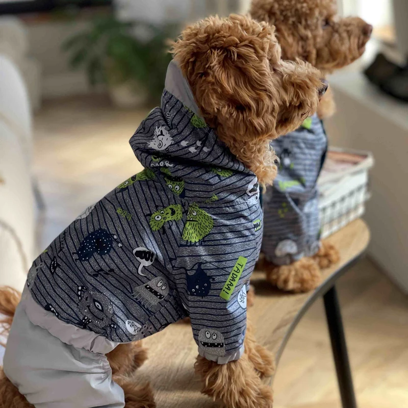 тканина водовідштовхувальна плащівка подклад водовідштовхувальна плащівка є отвір для повідця є капюшон застібається кнопками на животі модель унісекс