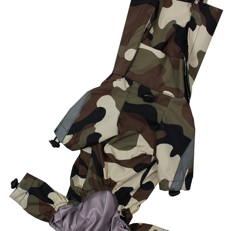 тканина плащівка з водовідштовхувальним просоченням підклад з водовідштовхувальним плащової тканини застібається змійкою збоку спини регулятори обхвату штанів регулятори обхвату грудей регулятори обхвату шиї регулятори на капюшоні, капюшон можна затягнути і прибрати (зробити коміром) на штанцях світловідбиваючі стрічки на спинці фірмовий голографічності шеврон є отвір для повідця на шиї модель унісекс