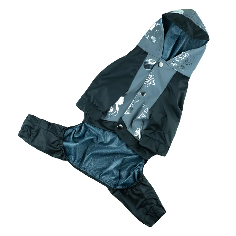 тканина світловідбиваюча та водовідштовхувальна плащівка комбінезон світиться при направленні на нього будь-якого світла кращий вибір для безпечних прогулянок ввечері, собаку видно на дорозі підклад з водооталкивающая плащової тканини на шиї отвір для повідця застібається кнопками на животі модель унісекс