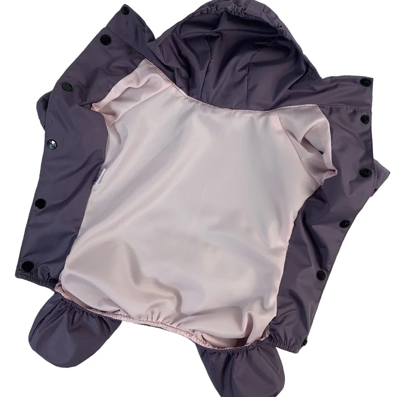 тканина водовідштовхувальна плащівка подклад водовідштовхувальна плащівка є отвір для повідця є капюшон застібається кнопками на животі модель для дiвчат, животик закрит
