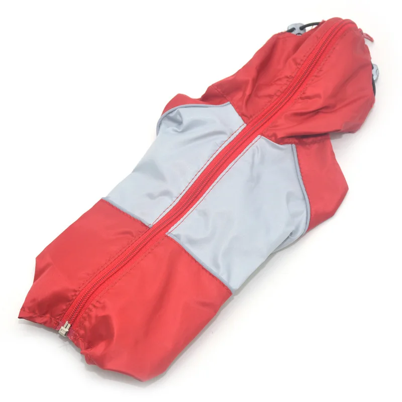 Дощовик з капюшоном пропонується для всіх порід собак. Дощовик виконаний з непромокаючої Болонія без підкладки, комбінується двома кольорами, застібка - блискавка на спині. Легкий літній дощовик і простий у використанні.