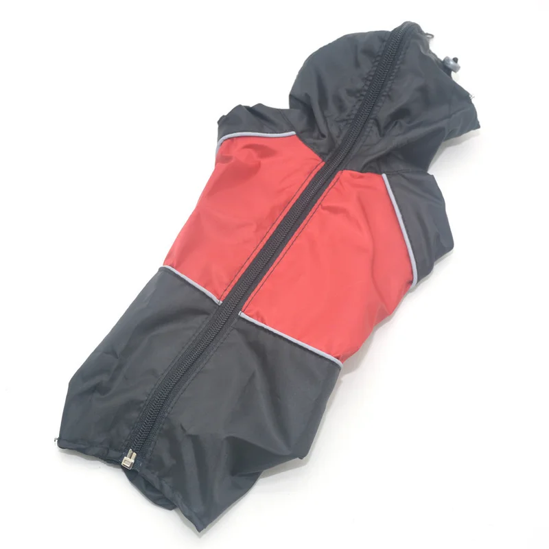 Дощовик з капюшоном пропонується для всіх порід собак. Дощовик виконаний з непромокаючої Болонія без підкладки, комбінується двома кольорами, застібка - блискавка на спині. Легкий літній дощовик і простий у використанні.