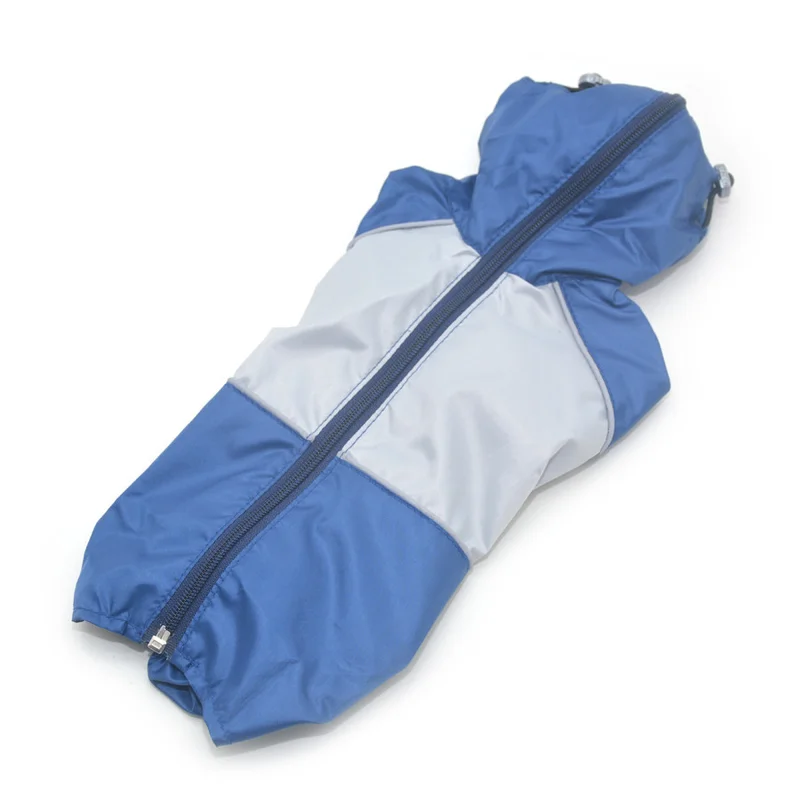 Дощовик з капюшоном пропонується для всіх порід собак. Дощовик виконаний з непромокаючого Болонія без підкладки, комбінується двома кольорами, застібка - блискавка на спині. Легкий літній дощовик і простий у використанні.