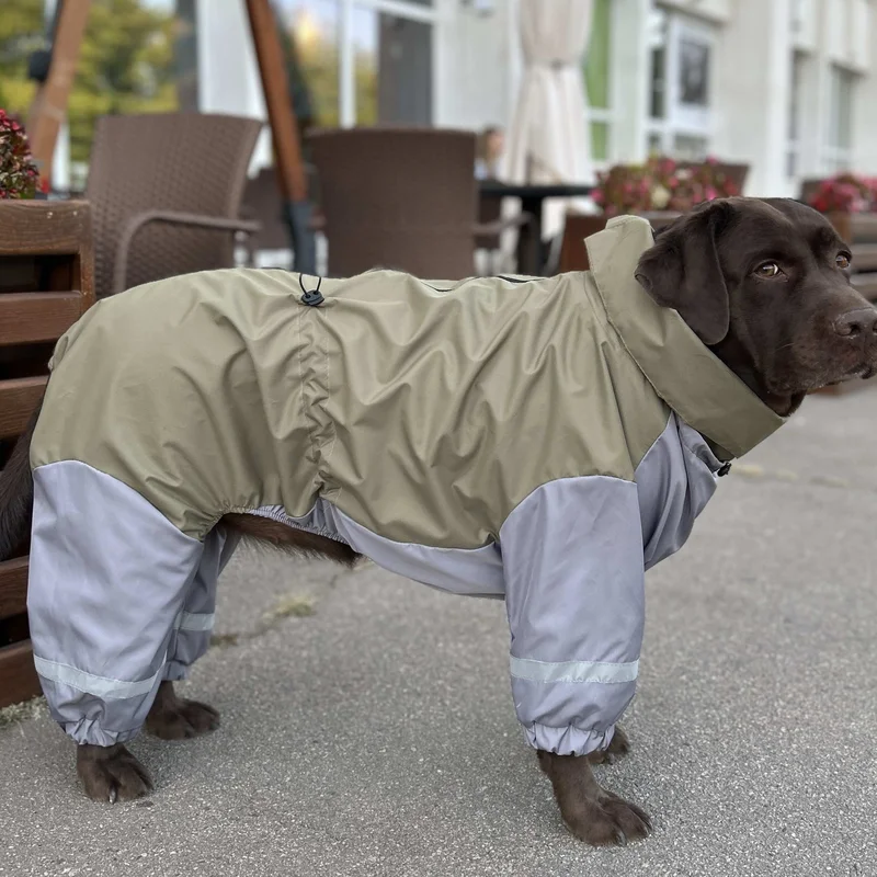 тканина плащівка з водовідштовхувальним просоченням підклад з водовідштовхувальним плащової тканини застібається молнією на спинці регулятори обхвату грудей регулятори обхвату шиї на штанцях світловідбиваючі стрічки модель унісекс