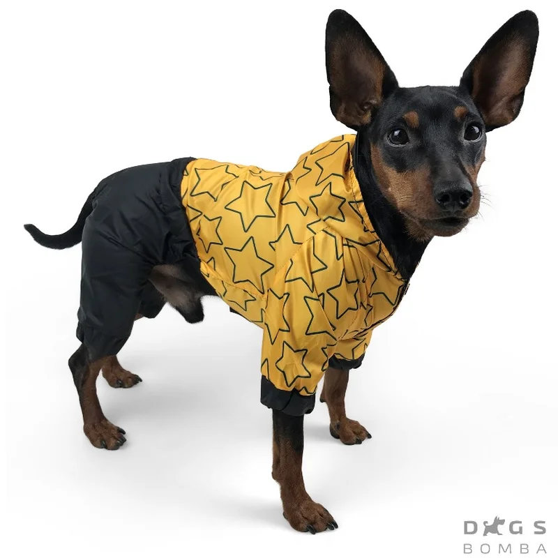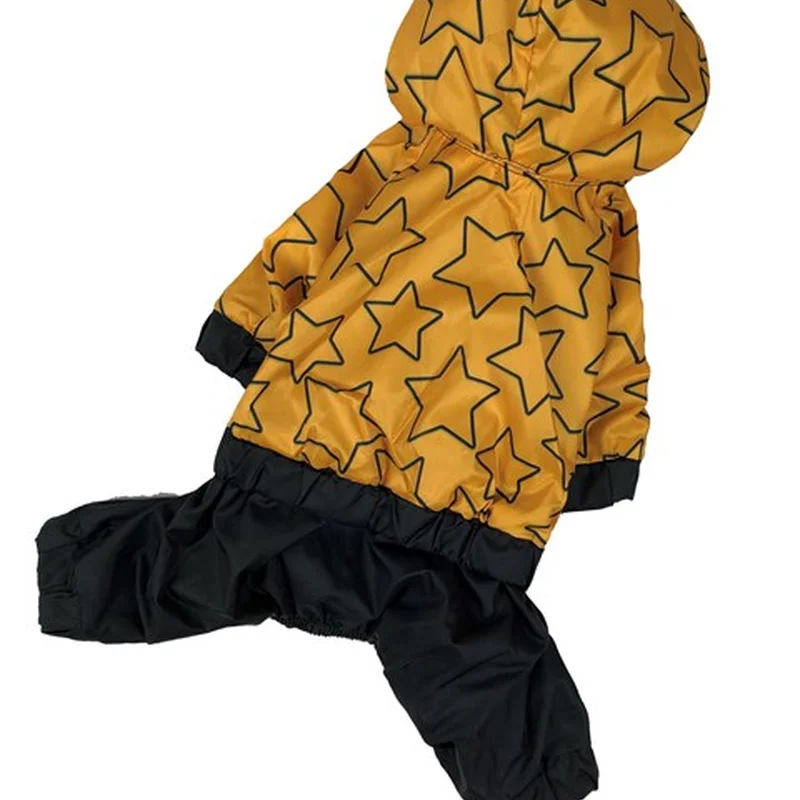 дощовик тканина водовыдтовкувальна плащівка; застібка- кнопки на животику; на рукавах і штанях резинка; пояс на резинці; капюшон з козирком; на шиї проріз для повідця, модель унісекс.