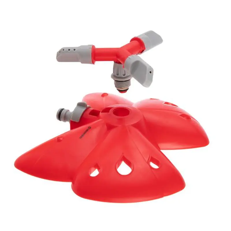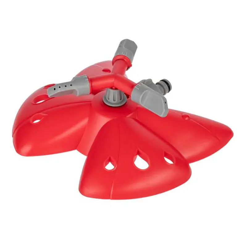 Зрошувач круговий (потрійна вертушка) незамінний, коли необхідно полити ділянку, город, газон, клумбу тощо. На відміну від ручного поливу зі шланга, ґрунт зволожується рівномірно, не утворюються калюжі, до того ж ви не докладаєте великих зусиль до поливу.
