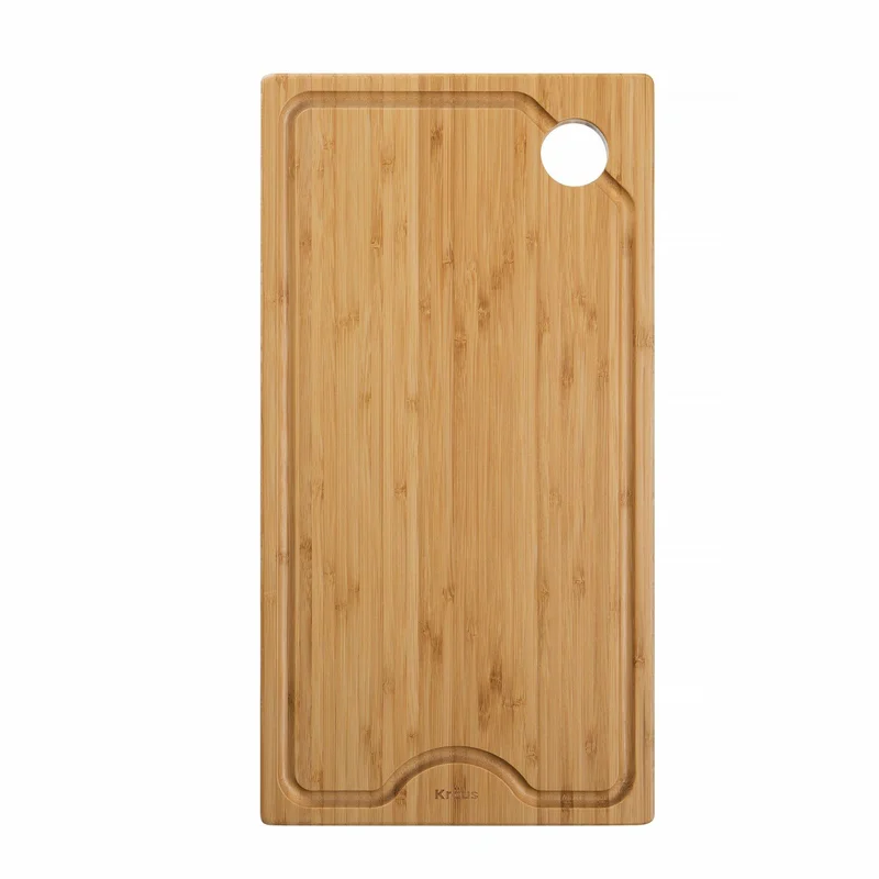 Збільшіть функціональність своєї раковини для робочої станції KRAUS за допомогою обробної дошки із 100% органічного бамбука, розробленої за індивідуальними розмірами, щоб утримуватись на інтегрованому виступі робочої станції. Обробні дошки KRAUS - ідеальний засіб приготування інгредієнтів до страв без втрати цінного робочого простору - вони дозволяють вам в повній мірі використовувати простір над раковиною для подрібнення, нарізання, розмелювання або навіть розкочування тіста. Оберігають стільниці від подряпин під час роботи, а після закінчення допомогають вичищати сміття прямо в стоковий отвір. Завдяки міцній бамбуковій конструкції ця обробна дошка має природну гігієнічну непористу поверхню, яка запобігає появі запахів і плям, а вбудовані канавки вловлюють рідину і запобігають її розливанню. Ознайомтеся з повним набором аксесуарів для робочих станцій KRAUS і підійміть свою кухню на абсолютно новий рівень!