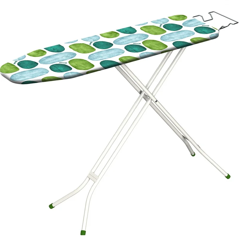 Прасувальна поверхня дошки має наскрізну перфорацію за типом сітки. Завдяки такій конструкції, пар з-під праски проходить крізь саму дошку, тим самим запобігає накопиченню конденсату під чохлом. Закруглене закінчення дошки дозволяє вигладити важкодоступні місця в сорочках або блузах. Чохол знімається, у міру використання його завжди можна випрати або замінити на новий. Прасувальна дошка, плавно і без особливих зусиль регулюється по висоті для максимально комфортного використання. На ніжки одягнені ковпачки, що оберігають дошку від ковзання. Надійна та практична, виготовлена з екологічно чистих матеріалів, прасувальна дошка Gimi Jean стане надійним помічником у вашому будинку.
