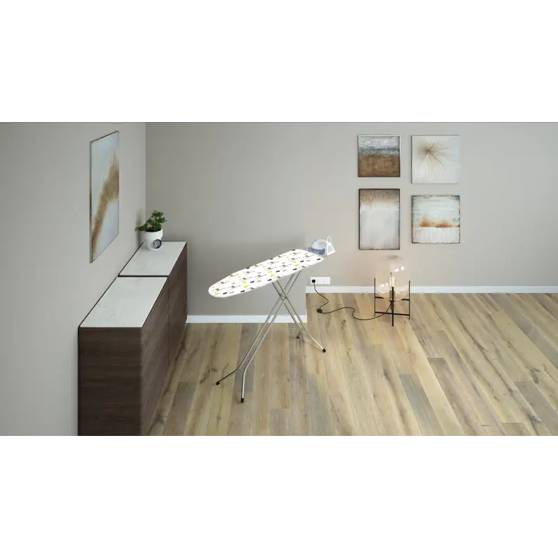 Дошка для прасування Colombo Easy Piuma (A122L08W) - базова річ, яка має бути в домашньому господарстві. Виготовлена безпосередньо в Італії, що гарантує високу якість збірки та матеріалів. Металева основа виготовлена у вигляді сітки, для запобігання утворенню конденсату від парових прасок. Чохол виготовлений з полікоттону. Модель має полегшену конструкцію, що спрощує її використання. Стійкість забезпечується завдяки широким ніжкам, які обладнанні накладками для захисту підлогових покрівель.