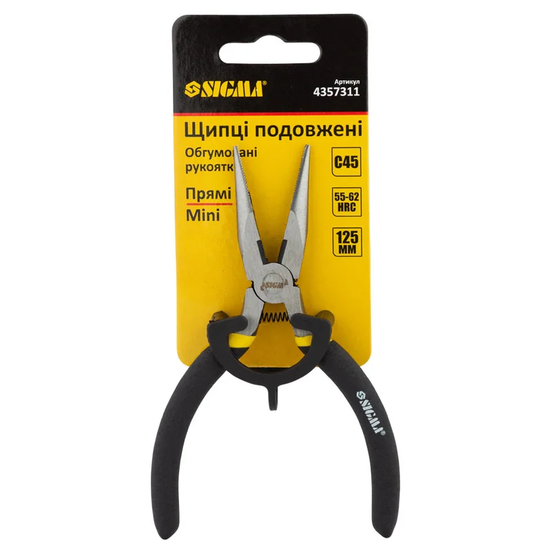Довгогубці прямі 125мм обгумовані рукоятки Mini SIGMA (4357311)