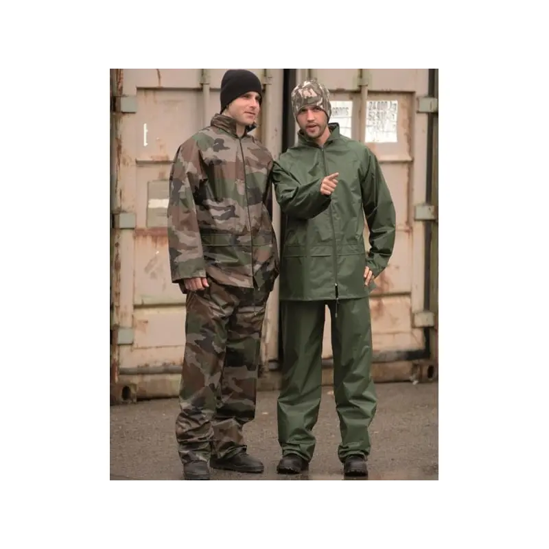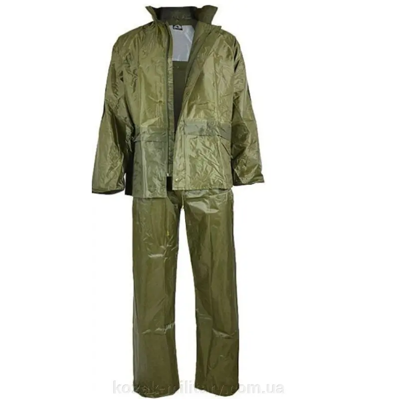 Очень прочный и легкий костюм для защиты от непогоды. При необходимости костюм складывается в чехол небольшого размера (в комплекте).Курточка застёгивается спереди застежкой-молнией. Капюшон может быть сложен в воротник. Два боковых кармана. Пояс штанов на шнурке и резинке. Изготовлен из вулканизированного полиэстера с покрытием из ПВХ. Материал полностью водонепроницаем и надёжно защищает от ветра.Предусмотрены боковые отверстия для легкого доступа к брючным карманам. Регулируемая ширина штанин. Костюм не прилипает к одежде и не ограничивает движение