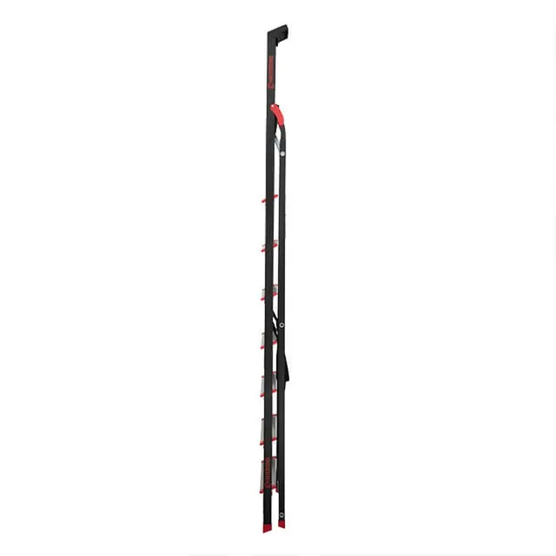 Міцно зчеплюются з будь-якими поверхнями підлоги і не пошокоджують підлогові покриття. Драбина стоїть стійко і ви можете не боятися впасти. Надійні захищені з'єднання сходинок і профілю, поручні, стяжні профілі і ремені роблять конструкцію драбини стійкою і безпечною.