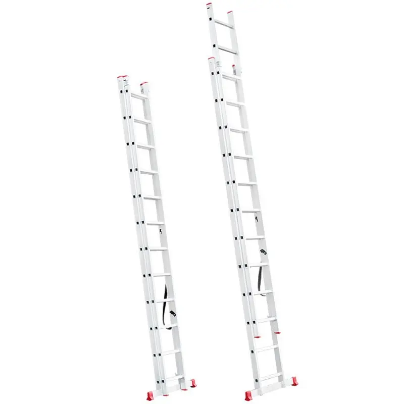 Складана двосекційна драбина стане у пригоді в будь-якій ситуації як професійним майстрам для роботи на висоті, так і для побутових потреб, а також працівникам складів, магазинів тощо. Драбина універсальна і підходить під будь-які завдання, максимальна висота становить 5,9 метрів, при цьому сходи можуть трансформуватися в будь-яке з трьох положень. Вона зручна для використання в домашньому господарстві, наприклад, замінити лампочки, пофарбувати стіни, помити вікна, також її можна використовувати як сходи на дах та ін.