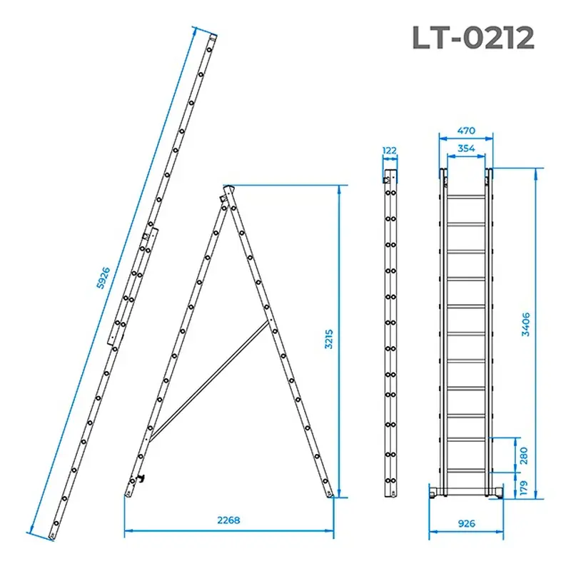 Конструкція дозволяє використовувати її як стрем’янку або як приставні сходи, а в складеному вигляді має невеликі габарити для зберігання. За допомогою ременів та замків безпеки, ви легко зможете встановити сходи у необхідному вам положенні. Функціональність драбини може бути розширена за допомогою додаткової сходинки-полиці LT-6000.
