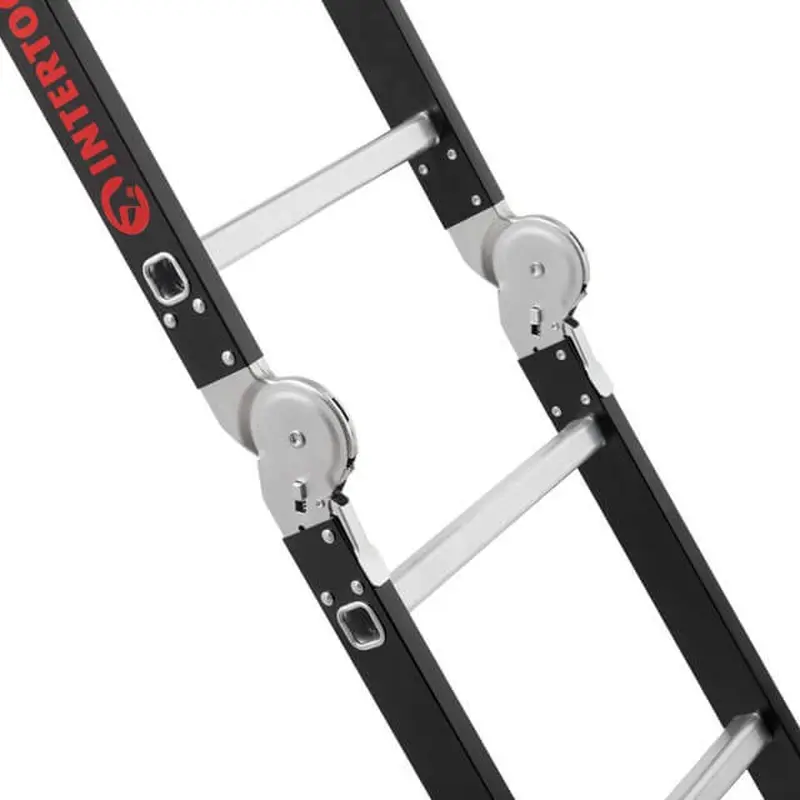 В основі функціональності драбини лежить шарнірний механізм, за допомогою якого ви легко зможете встановить драбину в потрібному вам положенні.