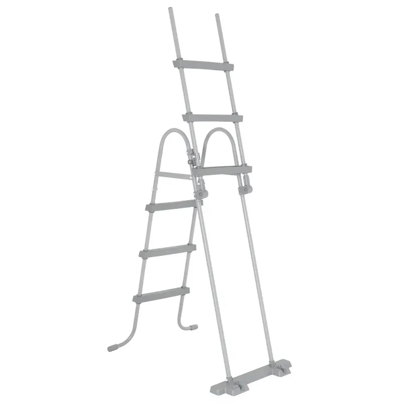 Драбина Bestway Flowclear - це незамінне доповнення до вашого наземного басейну. Драбина виготовлена з міцної сталевої конструкції з антикорозійним покриттям, що робить вхід та вихід з басейну не тільки безпечним, але і зручним. Драбина стійка до корозії та атмосферних впливів. Складна конструкція полегшує транспортування. Підходить для всіх наземних басейнів висотою до 107 см.