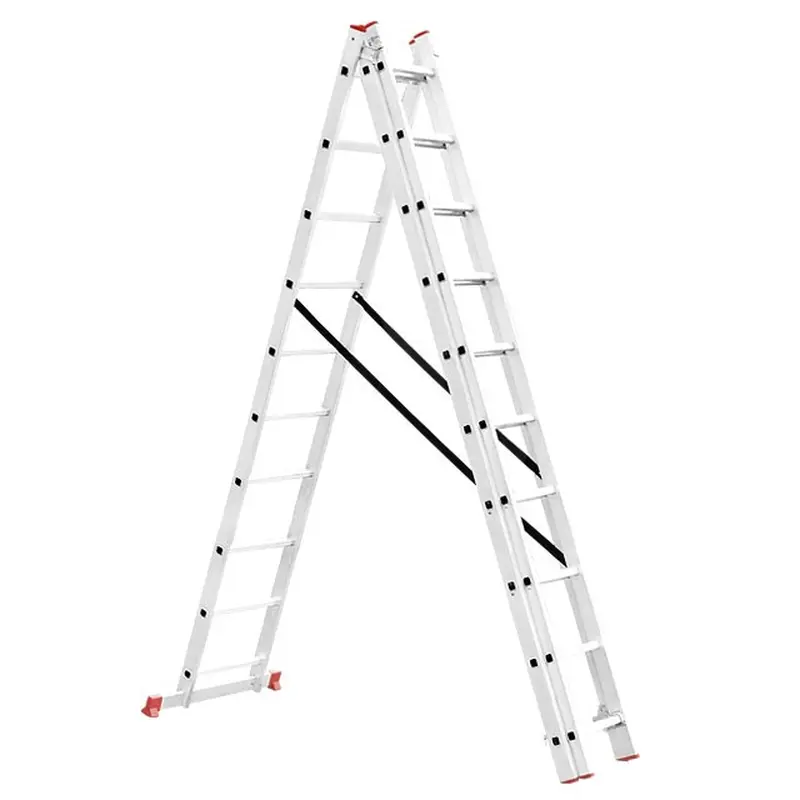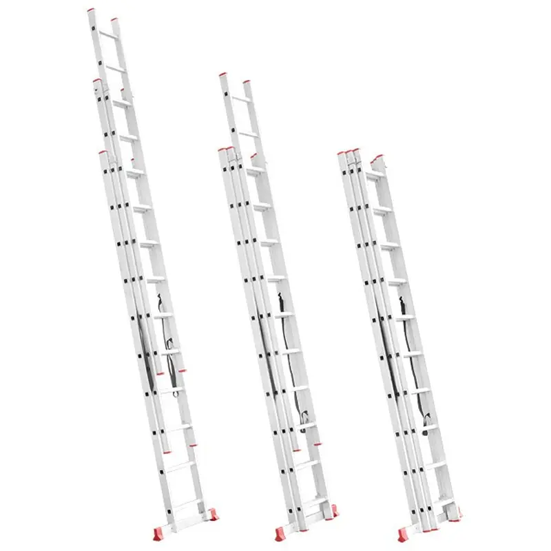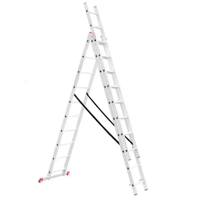 Складана трисекційна драбина стане у пригоді в будь-якій ситуації як професійним майстрам для роботи на висоті, так і для побутових потреб, а також працівникам складів, магазинів тощо. Драбина універсальна і підходить під будь-які завдання, максимальна висота становить 6,48 метрів, при цьому вона може трансформуватися в будь-яке з чотирьох положень. Зручна для використання в домашньому господарстві, наприклад, замінити лампочки, пофарбувати стіни, помити вікна, також її можна використовувати як сходи для дах та ін.