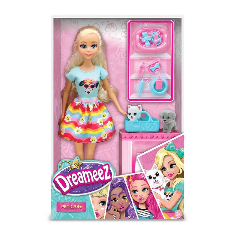 Ігровий набір Dreameez "Грумер" з лялькою та тваринами привносить нотку магії та турботи у світ ігор!Цей чарівний набір включає стильну лялечку, фігурки кошеня і цуценяти, а також милі аксесуари, які ідеально підходять для догляду та турботи.Завдяки таким аксесуарам, як їжа, приладдя для догляду, кошик для тварин малюки матимуть можливість насолоджуватися моментами, сповненими турботи та веселощів, піклуючись про тварин в ігровій формі.Набір містить:- 1 лялька;- 1 кошеня;- 1 цуценя;- різні аксесуари.Підходить для дітей від 3 років.