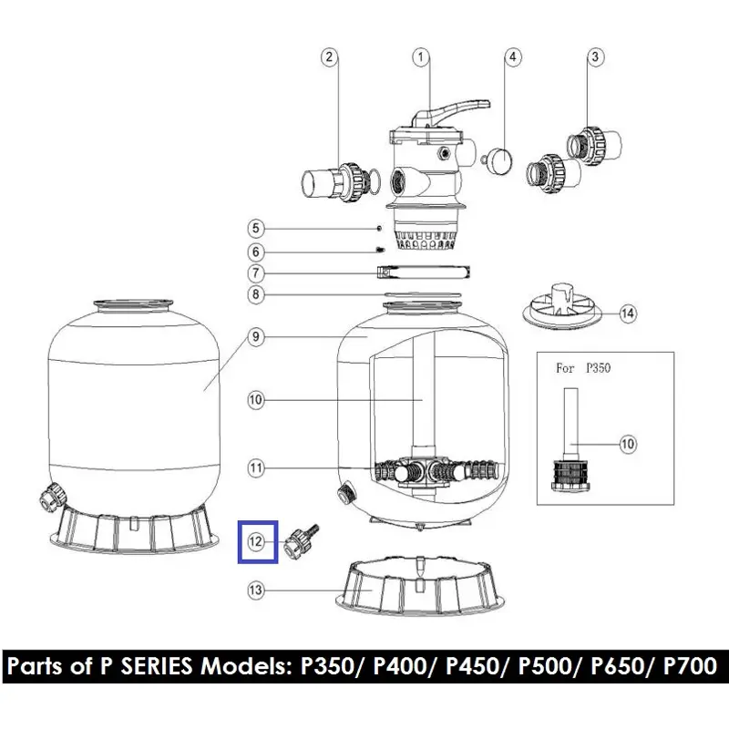 Універсальний дренажний клапан, підходить для фільтрів Emaux серії "MFV", "MFS", "P", "SP".