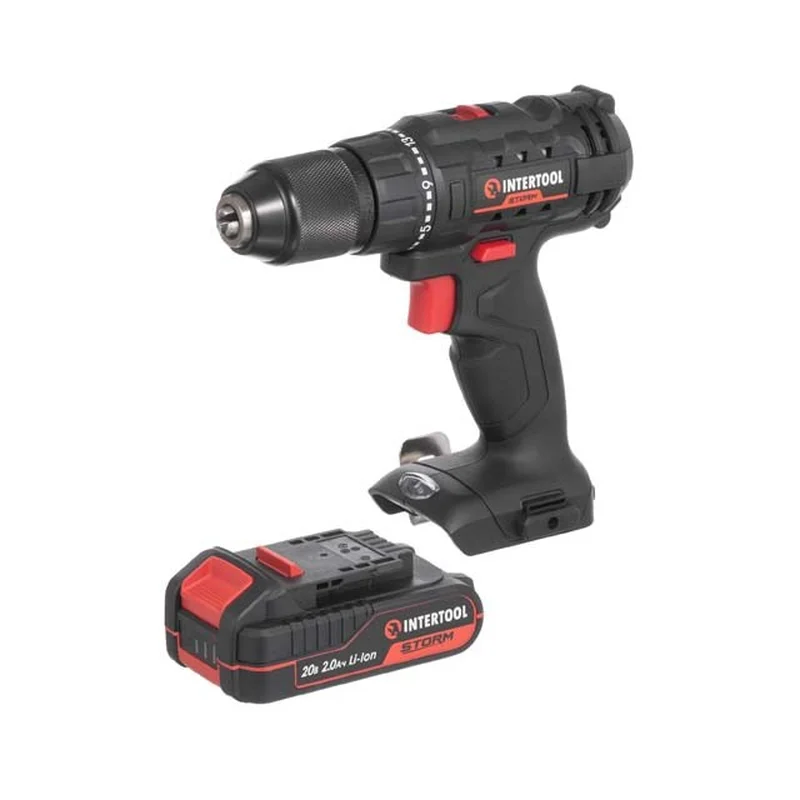 Дриль-шурупокрут акумуляторний 20 В, 35 Nm, 0-450/0-1500 об/хв., 2-13 мм, Li-Ion, 2.0 Аг, ЗП 2 А, кейс INTERTOOL WT-0350
