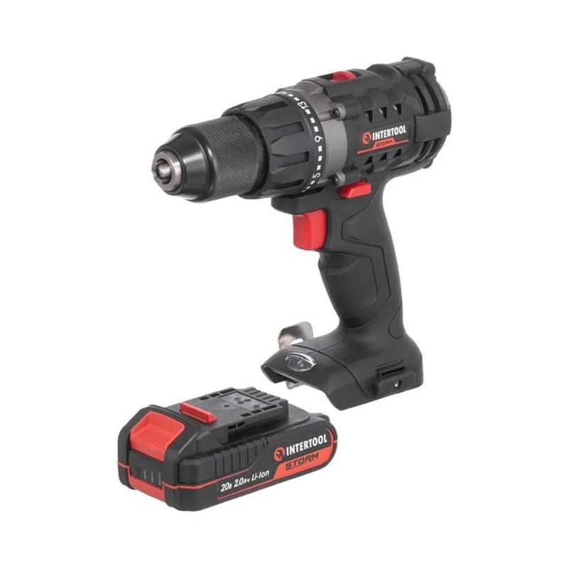 Дриль-шурупокрут акумуляторний 20 В, 50 Нм, 0-450/0-1700 об/хв., 2-13 мм, Li-Ion, 2.0 Аг, ЗП 2 А, кейс INTERTOOL WT-0351
