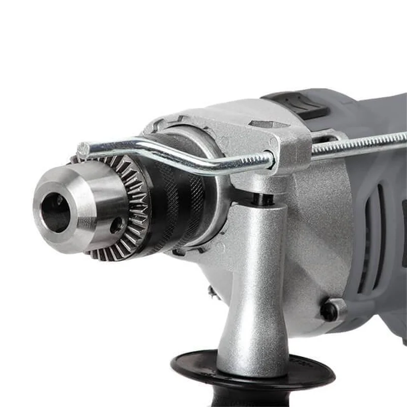 На дриль встановлений ключовий патрон (ключ у комплекті), він надійно фіксує свердла з діаметром хвостовика від 1.5 до 13 мм й не дає їм прокручуватися навіть в ударному режимі.