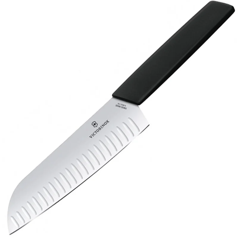 ДубльКухонный нож Victorinox Swiss Modern Santoku 17см рифл. с черн. ручкой (блистер)