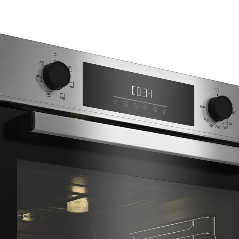 Повітряна випічка і ніжне м’ясо, розсипчаста картопля і ароматні овочі - духові шафи Beko створені закохувати в кулінарію. Галогенне підсвічування. Хороша видимість страви, що готується. Хочете спостерігати за процесом приготування, але не хочете відкривати дверцята, щоб не випускати жар? Галогенне підсвічування добре освітлює нішу духової шафи, даючи змогу стежити за своїм кулінарним шедевром через щільно закриті дверцята. Ручки PiPo: рішення для стилю та безпеки. Гладкі фасади кухонної техніки мають виграшний і сучасний вигляд. Щоб домогтися такого ефекту, в духових шафах Beko застосовуються ручки PiPo (Push in - Pull out) - з досить легким натисканням, щоб "втопити" або "вийняти" їх з фасаду. Таке рішення не тільки підвищує естетичність дизайну, а й робить духовку безпечнішою: маленькі діти не зможуть змінити задані вами налаштування або випадково ввімкнути духовку без вас. Хороша видимість страви, що готується. Хочете спостерігати за процесом приготування, але не хочете відкривати дверцята, щоб не випускати жар? Галогенне підсвічування добре освітлює нішу духової шафи, даючи змогу стежити за своїм кулінарним шедевром через щільно закриті дверцята. Міцні дверцята. Міцні дверцята для розміщення важких страв і посуду Гарячі важкі страви буває складно дістати з духовки. Міцні дверцята витримують навантаження до 22,5 кг. Це на 20% більше порівняно з дверцятами звичайних духових шаф. Тому ви можете поставити гарячу страву на відкриті дверцята, щоб перевести дух.