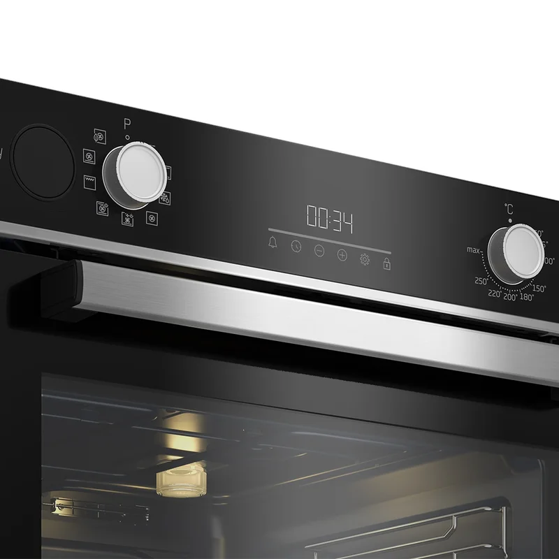 Телескопічні напрямні Телескопічні напрямні роблять духовку легкою та зручною в експлуатації. Завдяки їм ви можете не тільки швидко, але й безпечно вставляти та витягувати деко з пекарної камери. Завдяки телескопічним направляючим ви можете безпечно і легко висунути деко з гарячою їжею, уникаючи випадкових опіків. М’які двері М’яке та безпечне закривання дверей Завдяки новій конструкції петель дверцята в духовці Beko працюють плавно, м’яко і тихо - без хлопків і зайвого шуму. Каталітична система очищення Полегшує прибирання Спеціально розроблена каталітична задня стінка пристрою запобігає прилипанню жиру та полегшує утримання духовки в чистоті. Здоровий варіант випічки Випічка на пару – це запорука успішної випічки, ніжних овочів, насичених поживними речовинами, і м’яса, хрусткого зовні та водночас м’якого всередині. Під час процесу випікання вода подається з бака на дно духовки, звідки вона піднімається у вигляді пари. Попрощайтеся з надто твердою печенею, сухою індичкою чи пересмаженими запіканками.