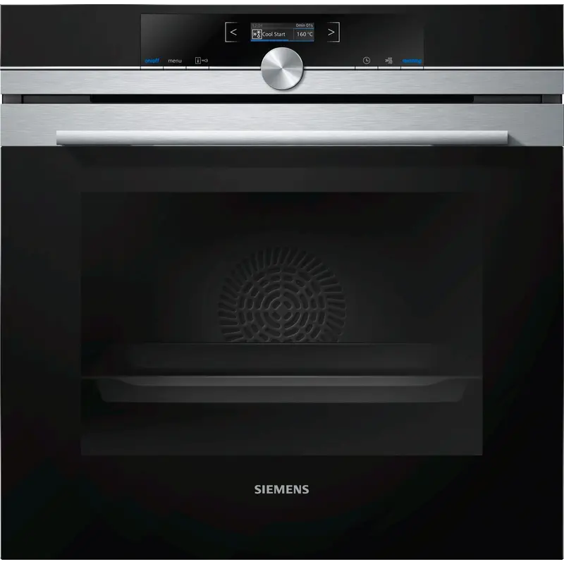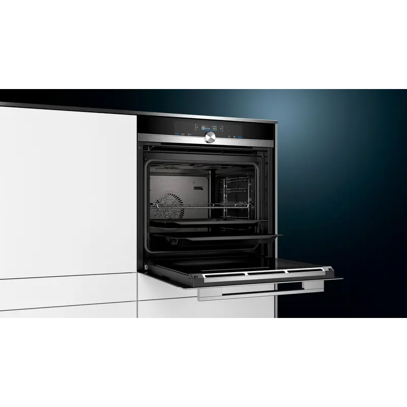 Зручне та приємне готування у сучасній духовій шафі з найкращими результатами, на які Ви можете покластися. 4D Гаряче повітря: готування можливе на всіх рівнях. Зручність, зрозумілість, інтуїтивність: кольоровий текстовий TFT дисплей. EcoClean Direct: більше ніякої чистки духової шафи завдяки особливому покриттю, яке поглинає. Клас енергоефективності А+: готування стало більш енергозбережливим. softMove: м"яке відкриття та закриття двері духової шафи. 100% гарячого повітря. На 30 % нижче споживання енергії: гаряче повітря eco. Інноваційний вид нагрівання «Гаряче повітря eco» від Siemens дозволяє не лише заощадити 30% електроенергії, але й отримати неперевершені результати незалежно від того, що Ви готуєте: пиріг, лазанью чи піцу. Цей вид нагрівання з особливою системою контролю температури створено спеціально для економного використання електроенергії під час запікання чи обсмажування страв гарячим повітрям на одному рівні духової шафи. 4D Гаряче повітря. Інноваційна технологія двигуна вентилятора забезпечує ідеальний розподіл тепла по всьому внутрішньому простору печі. З більшою гнучкістю ваші страви вийдуть такими, як ви хочете, незалежно від того, яку полицю ви використовуєте. SoftMove. Розслаблена робота духовки без натискання і витягування. Інтелектуальний демпфуючий механізм забезпечує плавне закривання і закривання дверцят духовки.