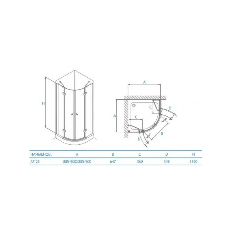 Душ. каб. півколо 900x900x1850 chrome; clear