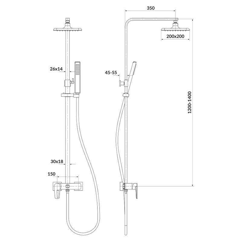верхній душ, душова штанга, душовий кронштейн, душовий шланг, змішувач, ручний душ, тримач для ручного душу