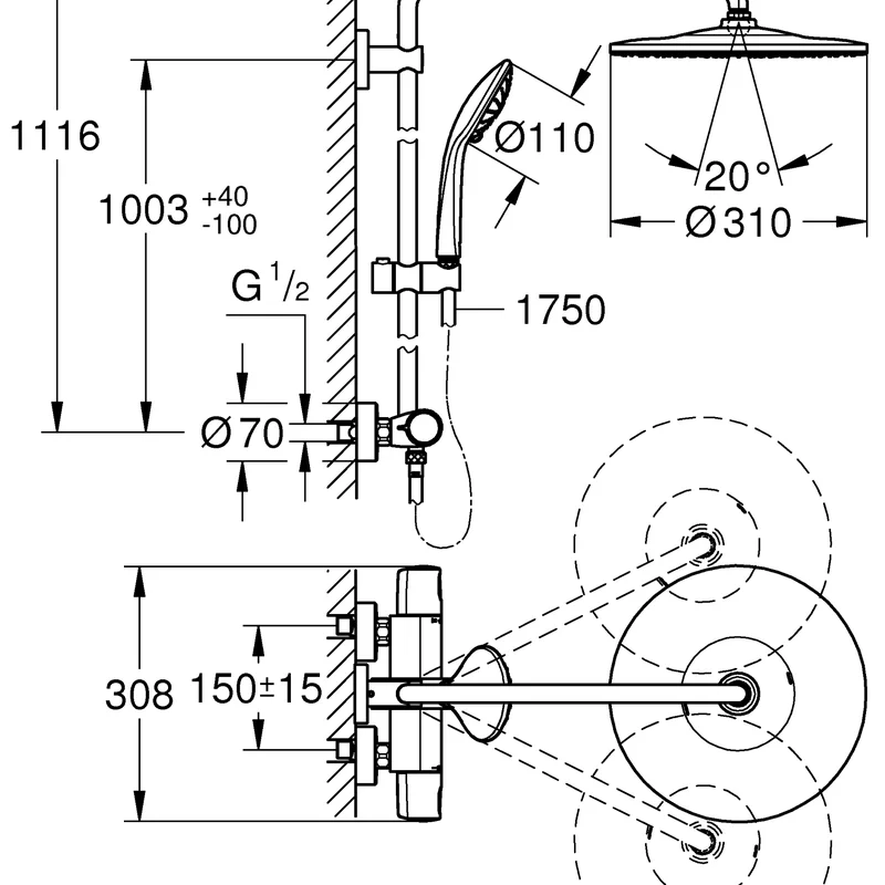 Душевая система с термостатом для душа Grohe Euphoria System (26075001)