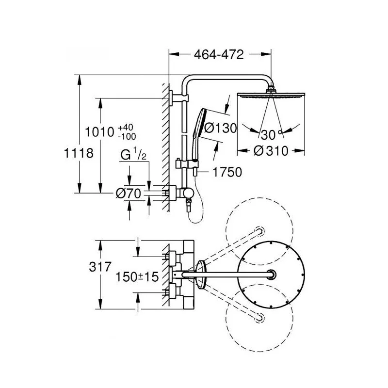 Душевая система с термостатом для настенного монтажа Grohe Rainshower Smartactive 310 (27966001)