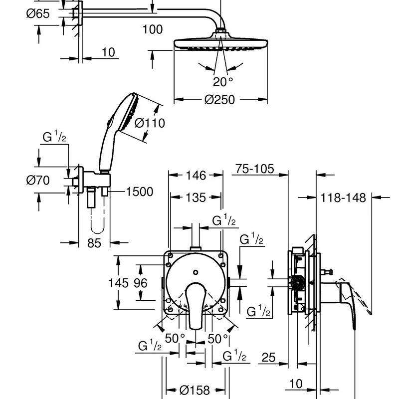 Душевая система скрытого монтажа Grohe Eurosmart (25288000)