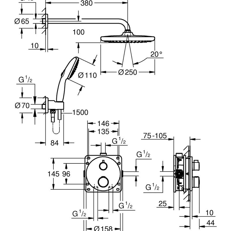 Душевая система скрытого монтажа с термостатом Grohe Grohtherm (34872000)