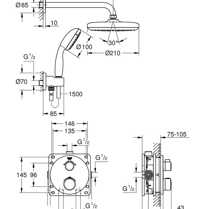 Душевая система скрытого монтажа с термостатом Grohe Grohtherm Convent. Concealed (34727000)