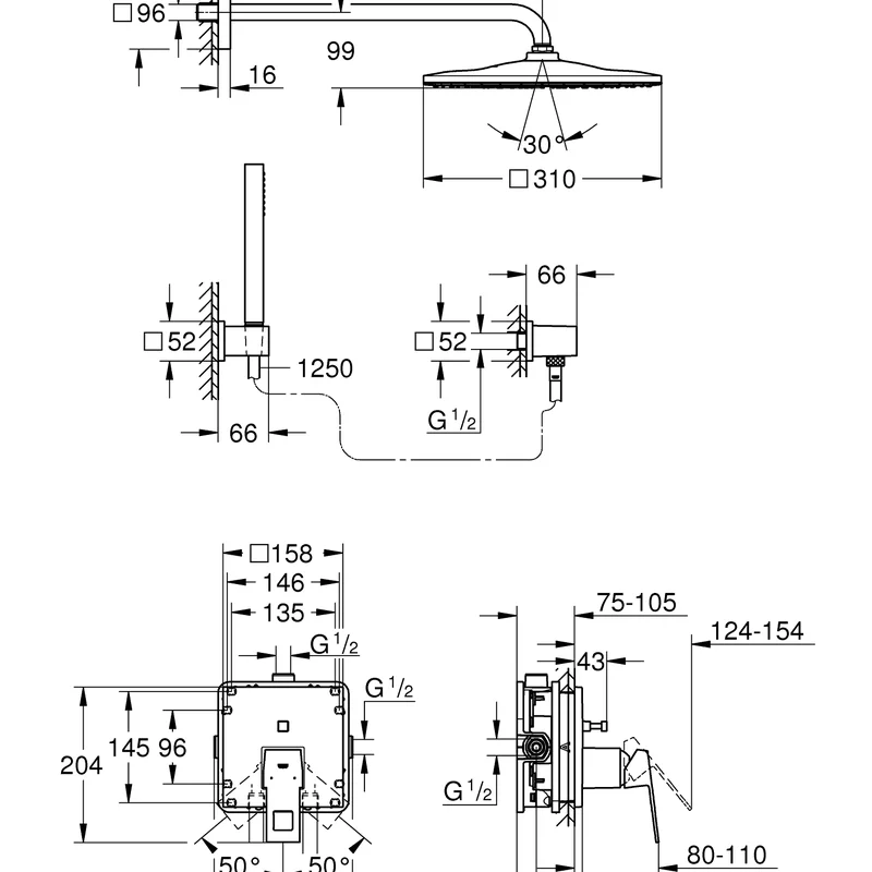 Душевая система скрытого монтажа со смесителем Grohe Eurocube (25238000)
