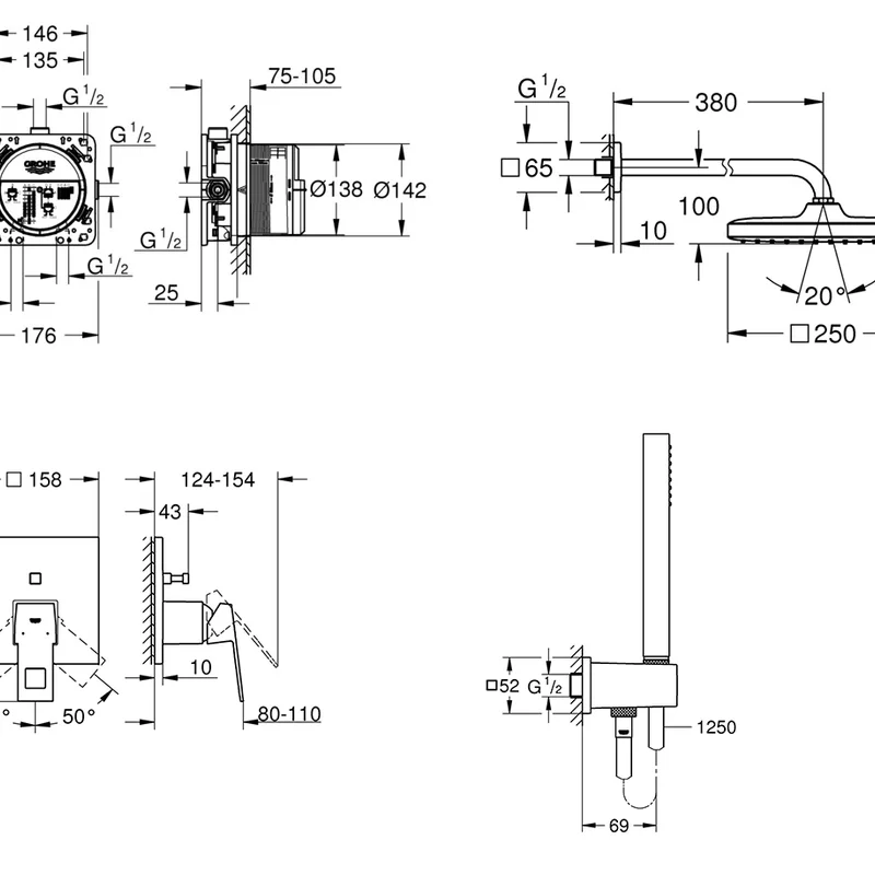 Душевая система скрытого монтажа со смесителем Grohe Eurocube New Tempesta 250 (UA26415SC3)