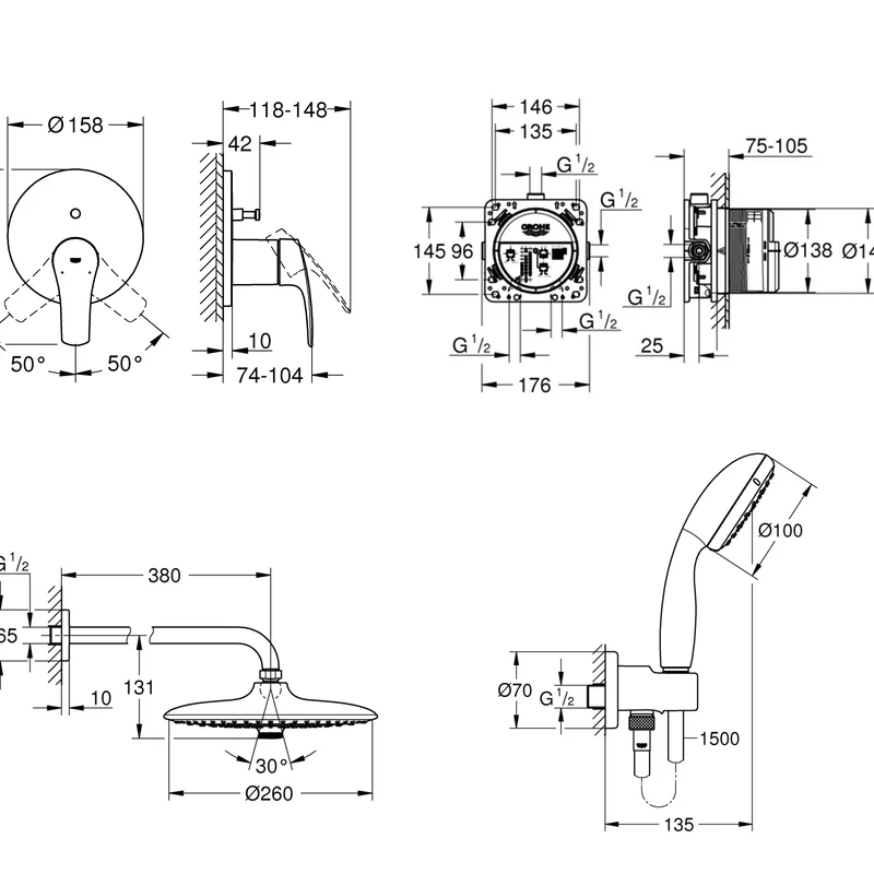 Душевая система скрытого монтажа со смесителем Grohe Grohtherm SmartControl (UA34614SC4)