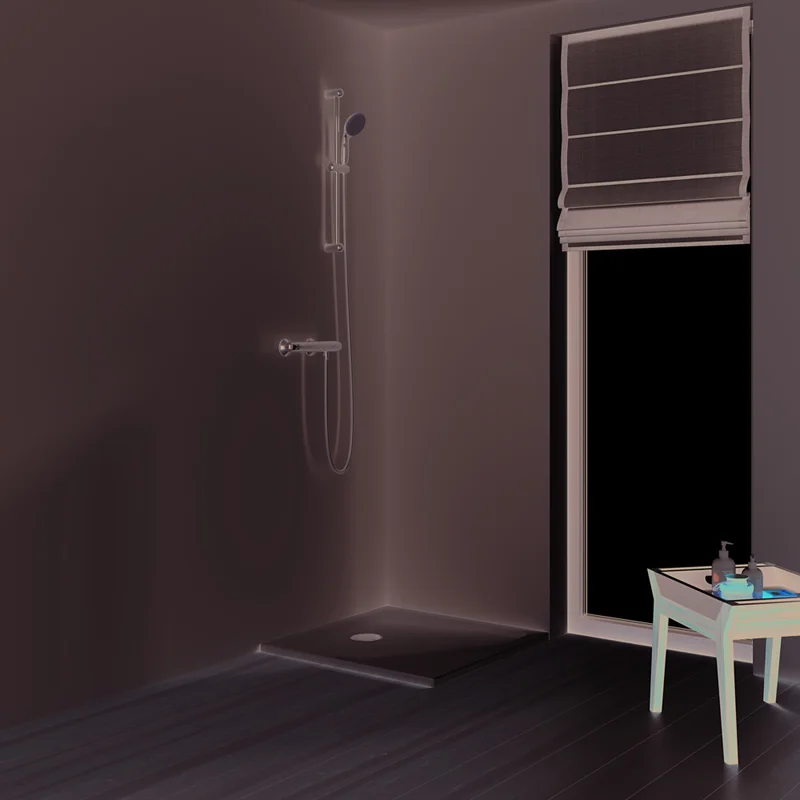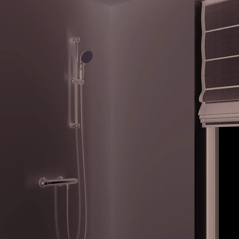 Душевая штанга с кронштейном для лейки (27523000), лейка для ручного душа (27597000), душевой шланг (28154000), крепежи.