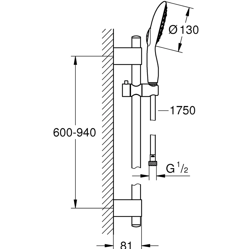Душевой гарнитур со штангой, 4 режима струи Grohe Power&Soul (27738000)