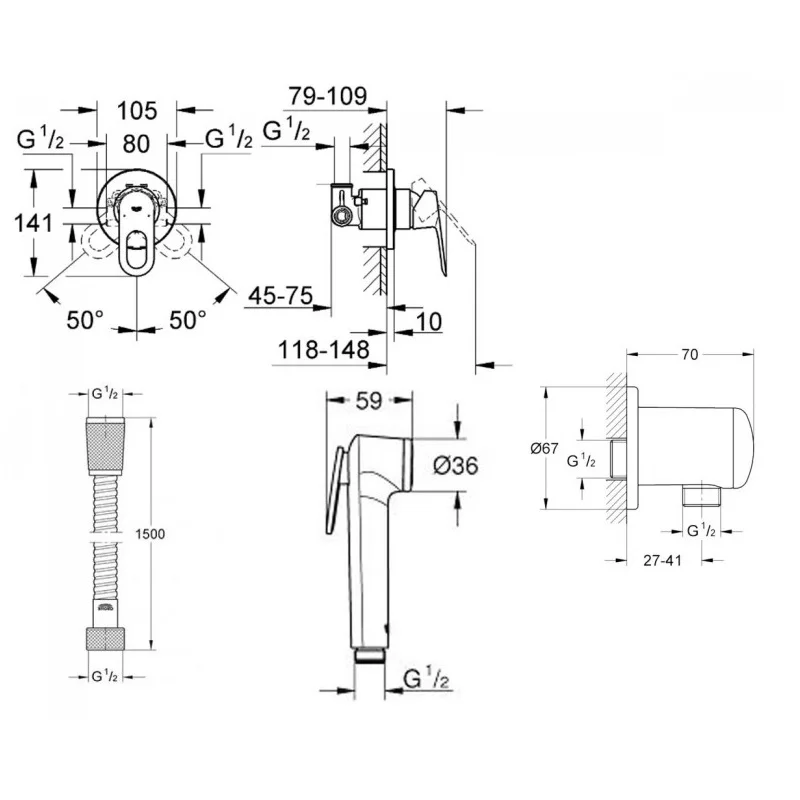 Душевый гарнитур для биде Grohe BauLoop (111042)