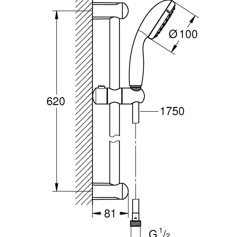 Душевый гарнитур со штангой, 1 режим струи Grohe New Tempesta Classic (27924001)