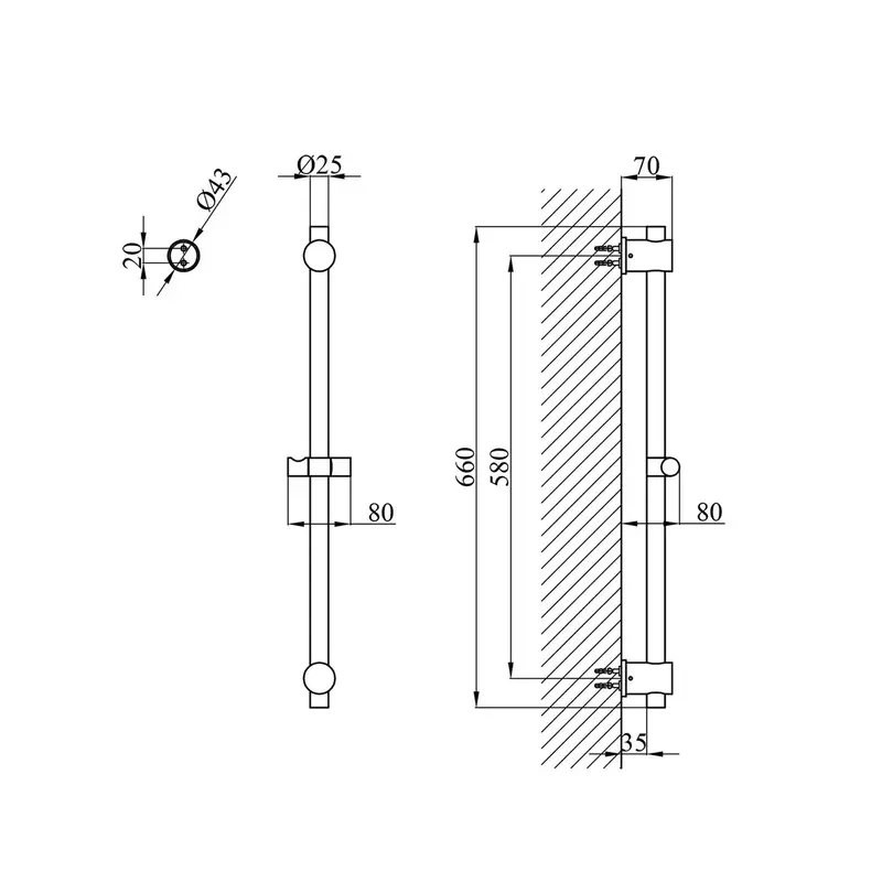 Душова стійка WAL NG-ST801-це ідеальне поєднання елегантного дизайну і високої функціональності для вашої ванної кімнати. Дозвольте собі насолоджуватися розкішним душем з цією стильною і зручною стійкою.Особливості душової стійки WAL NG-ST801:- Вага: 0,42 кг-легка конструкція для зручності монтажу та експлуатації.- Покриття: нержавіюча сталь-гарантує довгий термін служби, стійкість до корозії і збереження привабливого зовнішнього вигляду.- Довжина: 660 мм-оптимальні розміри для приємного душу.- Стилістика дизайну: класичний - підкреслює елегантність і вписується в різні інтер'єри.- Тримач душової лійки: вбудований - забезпечує зручне і функціональне розміщення душової лійки.- Верхній душ: відсутній - стійка призначена для використання з ручним душем.- Мильниця, поличка: відсутні - мінімалістичний дизайн для сучасних інтер'єрів.- Ручний душ регульований по висоті: так - надає можливість налаштування висоти відповідно до ваших уподобань.- Матеріал душової штанги: Нержавіюча сталь - забезпечує міцність і довгий термін служби.- Відстань між отворами (см): 58 - зручні параметри для установки в більшості ванних кімнат.- Регулювання кута нахилу ручного душу: так - забезпечує оптимальний кут подачі води.Душова стійка WAL NG-ST801-це не просто аксесуар для ванної, а елемент дизайну, який додасть вашій ванній кімнаті вишуканий вигляд і створить атмосферу розкоші. Насолоджуйтесь кожною миттю свого душу з цією стильною та зручною душовою стійкою.