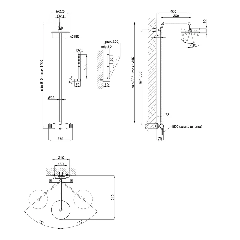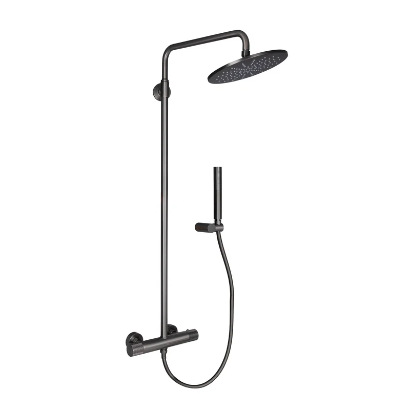 Душова система універсальна Qtap Brno термостатична на два споживача QTBRN5769103ONK Gunmetal Black PVD