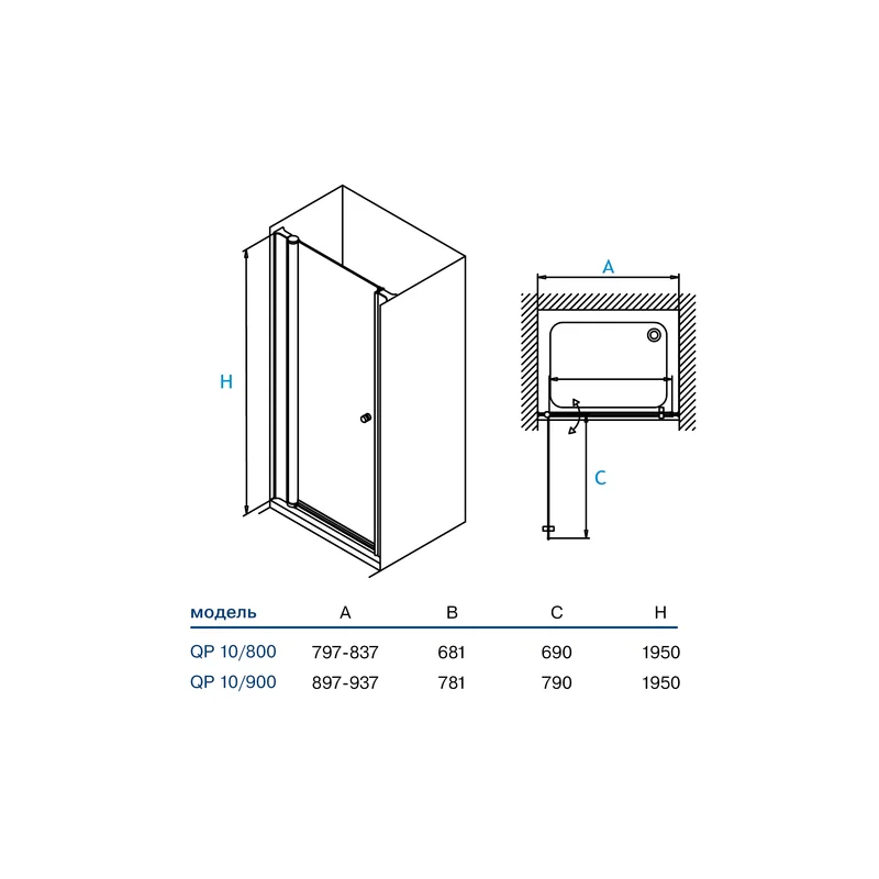 Відкривні двері в нішу QP10 мають комфортні розміри завширшки (80 і 90 см) та скло у прозорому чи матовому виконанні. Легкий алюмієвий профіль, якісна фурнітура та загартоване скло 6 мм забезпечують довговічність та надійність під час експлуатації. Додатково моделі душових дверей QP10 серії Waterfall Line комплектуються акриловими піддонами GRACE та ROUND.