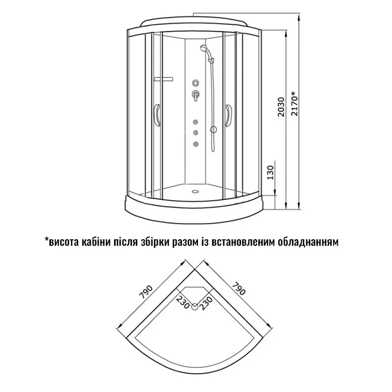 Размеры:800х800х2100 мм