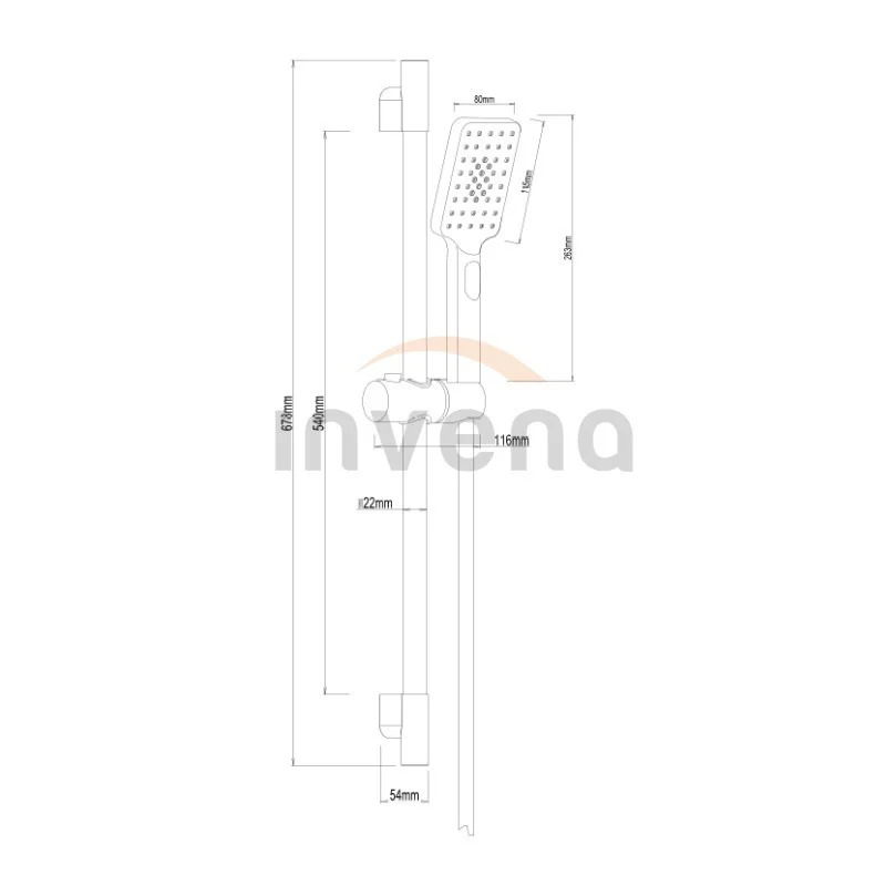 Торгова марка INVENA -знана польська компанія, заснована в 1992 р відомим польським полярником Мареком Камінські. Компанія Invena пропонує інженерну сантехніку і сантехніку для ванної кімнати. У червні 2000 р INVENA S.A. стала першим польським дистриб'ютором в галузі інженерної сантехніки, який отримав сертифікат системи управління якістю ISO 9001. INVENA S.A. є лауреатом безлічі нагород і конкурсів. Двічі ставала лауреатом Європейської медалі та двічі була удостоєна статуетки «Золотий сантехнік».Душовий набір Midnight Black Gold Rose - це інноваційна та елегантна комбінація двох наймодніших кольорів в дизайні інтер’єру. Матовий чорний з рожевим золотом створює нетрадиційні прикраси для ванної кімнати, надаючи їй чуттєвий характер.- Висота: 54- Кількість і тип функцій душової лійки: 3 нормальний потік, делікатний, змішаний- Колір: Чорний/золотий- Тип ручки: регульована